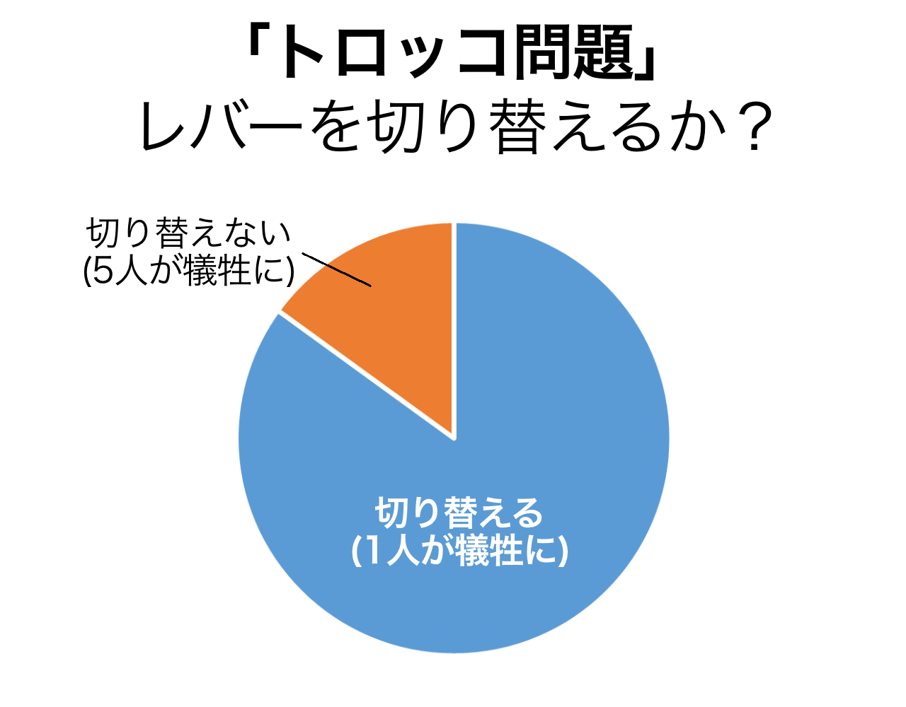 トロッコ問題では85%以上の人がレバーを操作して1人を犠牲にする選択をしますが、