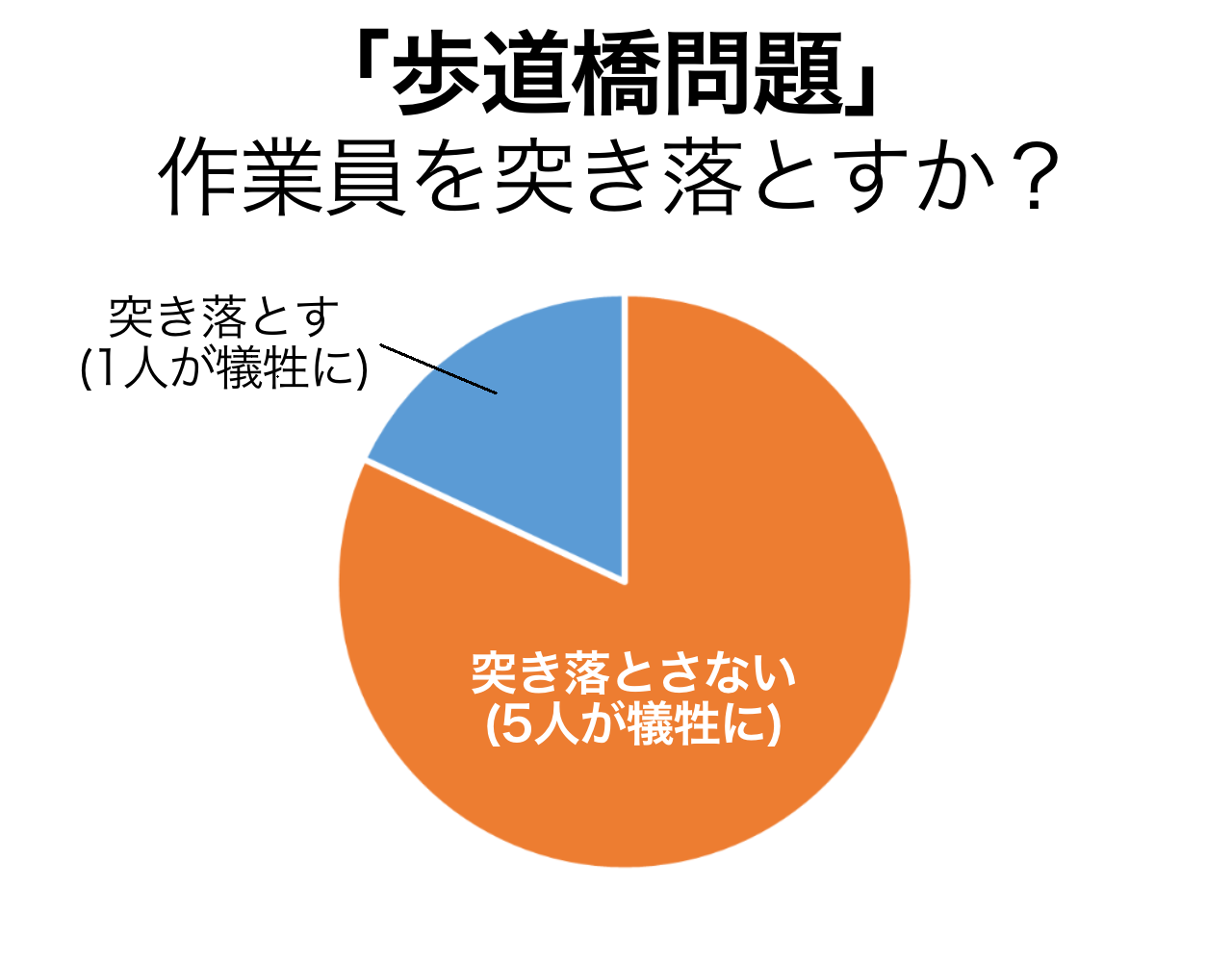 この問題では75~90%の人が、作業員を突き落とさず5人を犠牲にする選択をするそうです。