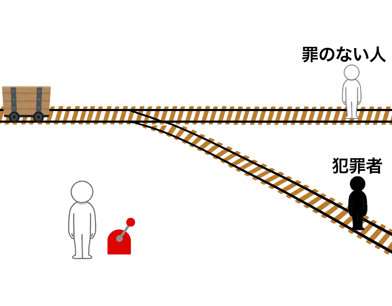 レバーを切り替える → 線路を切り替えた先の、犯罪者が犠牲になる