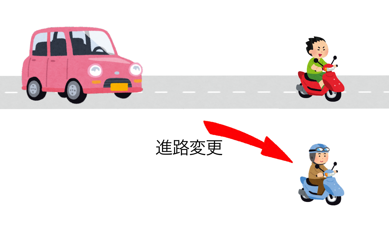 ですが、進路を切り替えた先には人がいます。この人はヘルメットをしています。